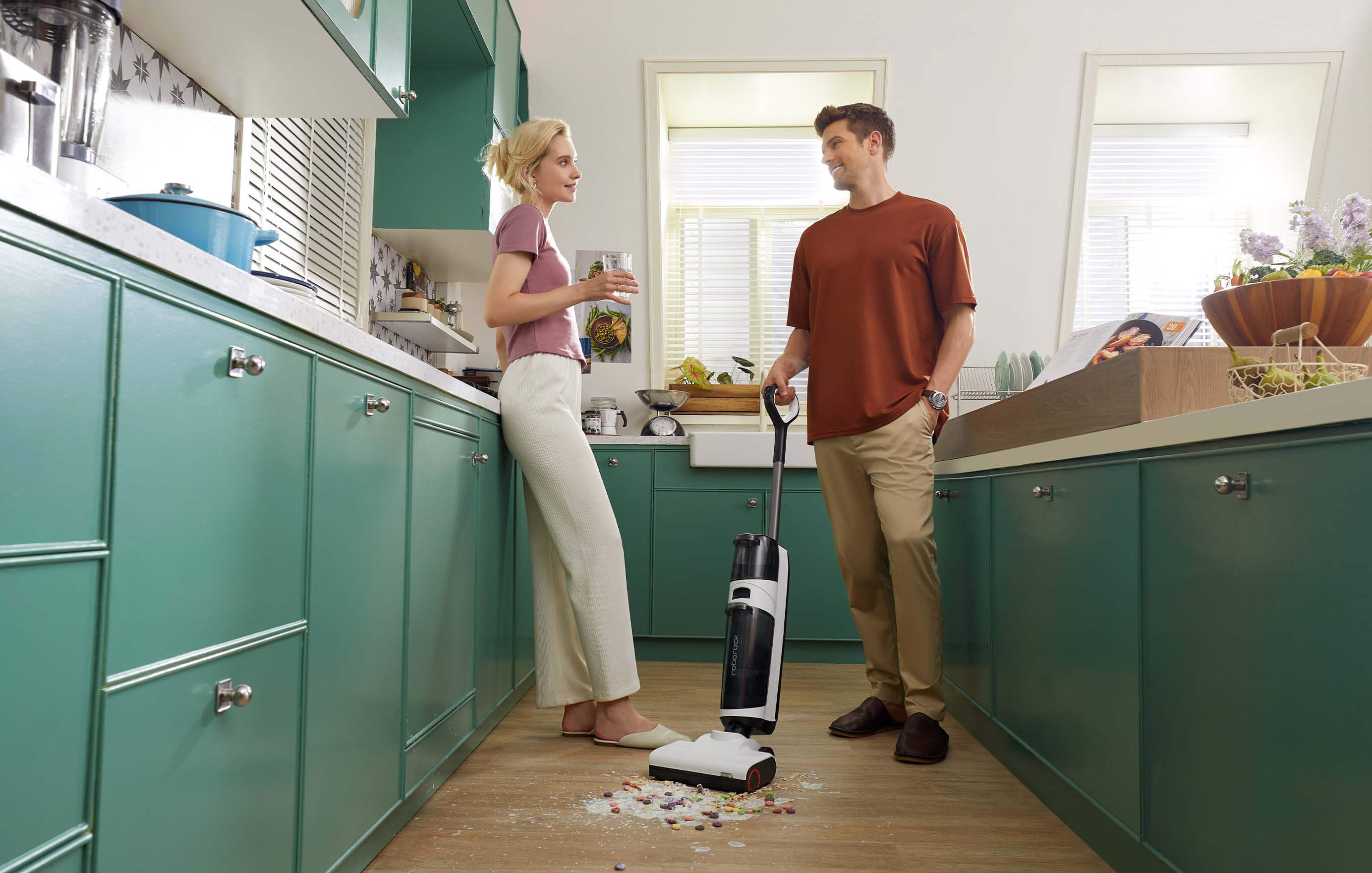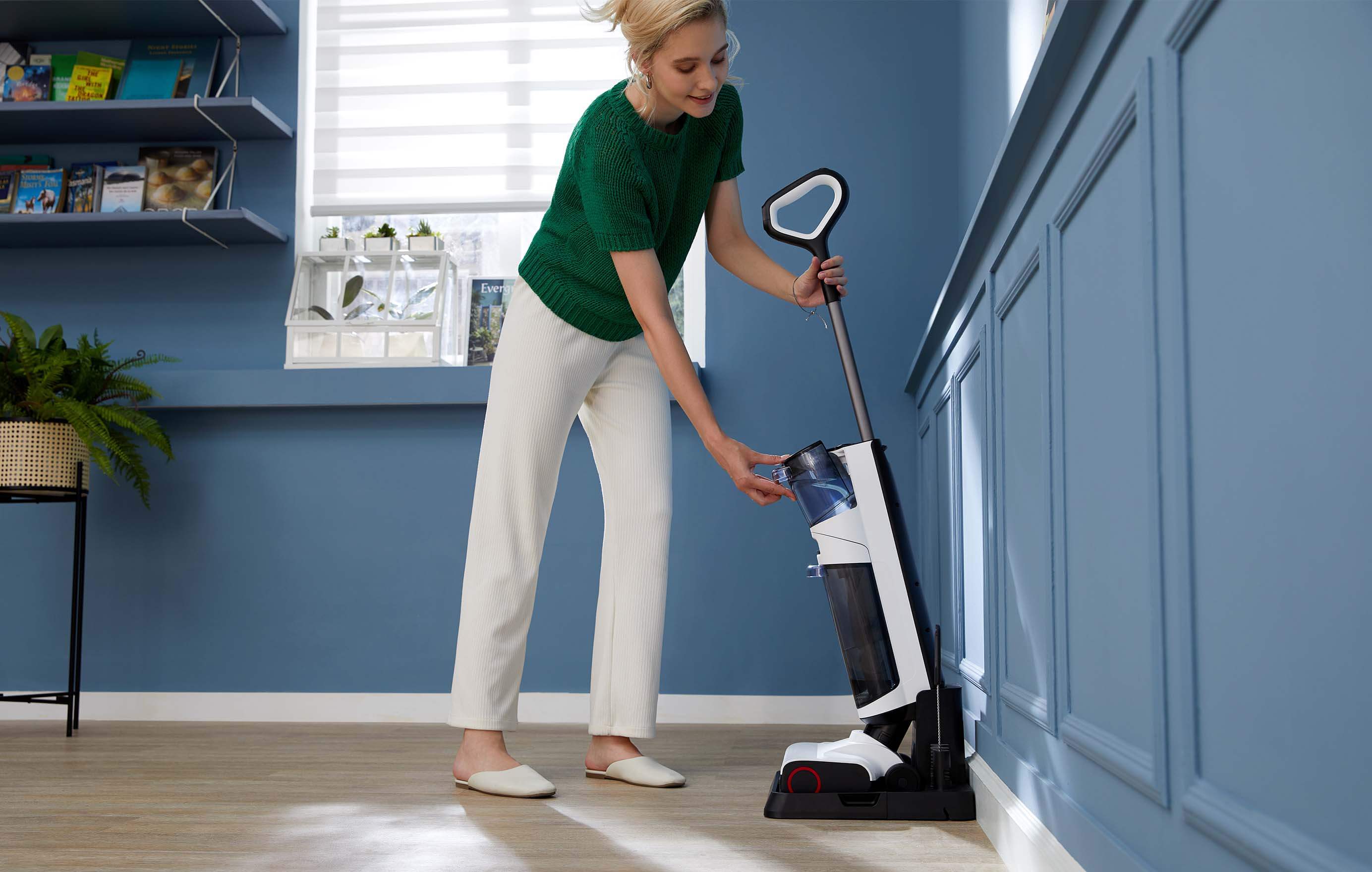 Automatically adjusts its cleaning power and water flow for a perfect clean when detecting how dirty the floor is. The on-screen LED indicator tells you where the dirt is so you know where to focus.