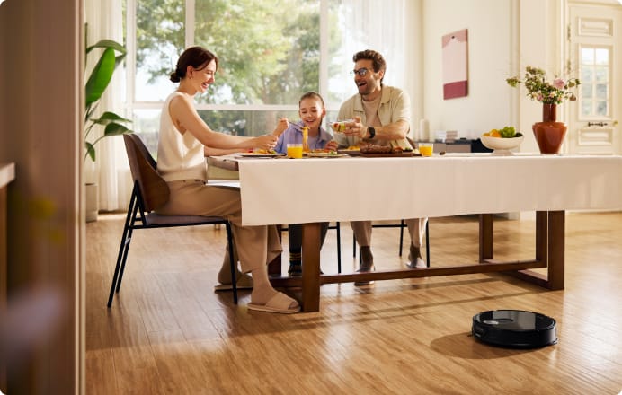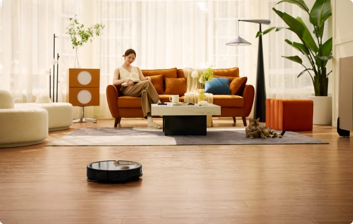 The robot seamlessly navigates through your home and detects obstacles simultaneously.