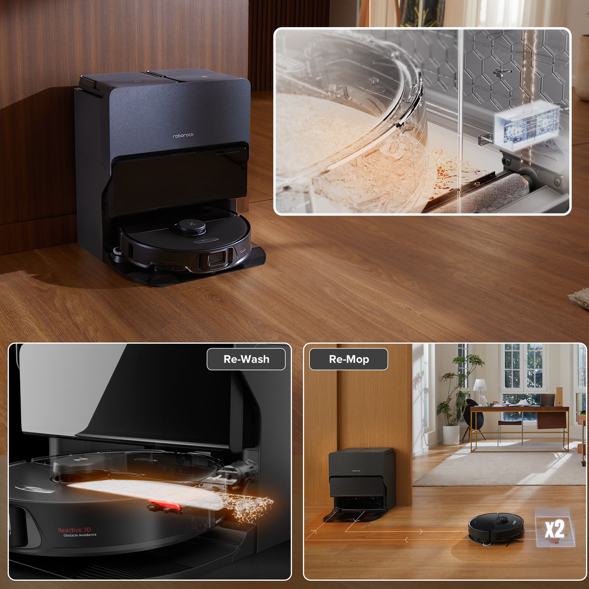 * Automatic re-mopping feature needs to be activated manually in the Roborock app.