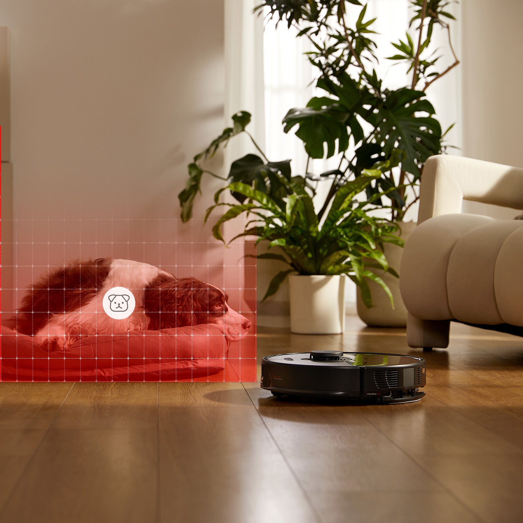 When approaching your beloved pets, it will immediately stop its main brush, and move aside in advance to prevent frightening your furry friends.