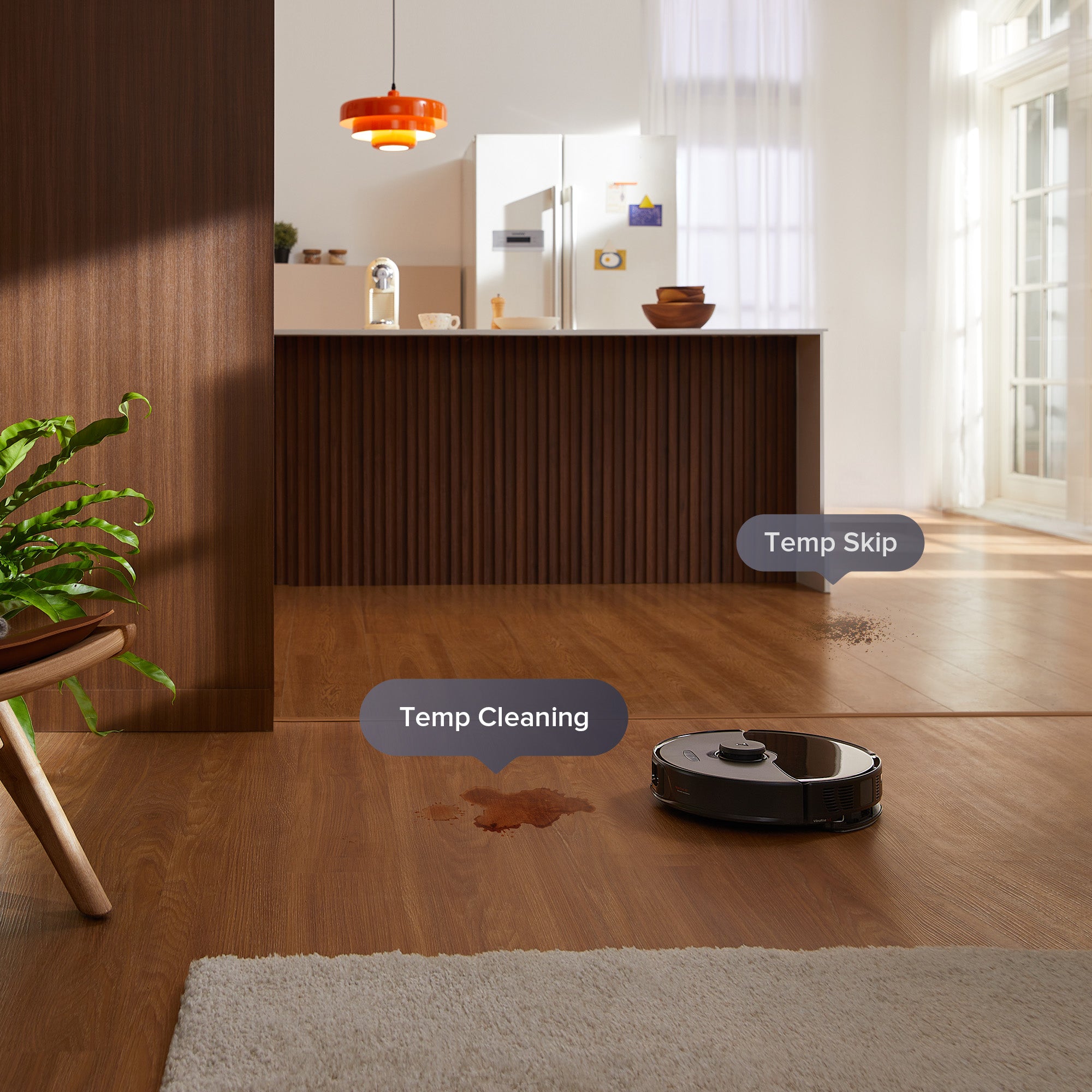 The “Temp Cleaning” function swiftly handles unexpected spills without disrupting your usual cleaning schedule.You can also utilize the “Temp Skip” feature to temporarily bypass cleaning specific areas as needed.