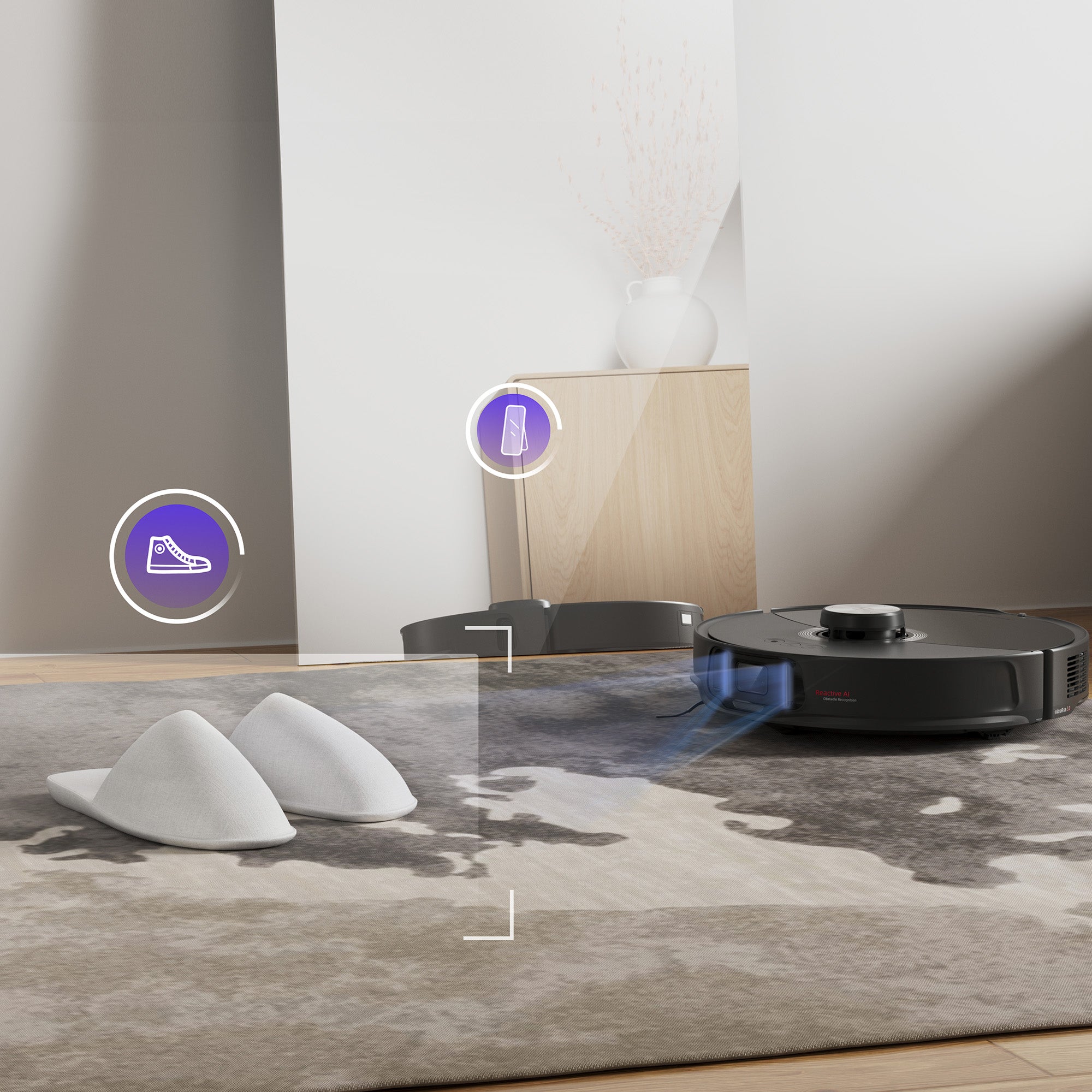 *Based on Roborock internal testing, S8 MaxV Ultra can see and bypass objects down to as small as 5cm wide and 3cm tall. Recognition accuracy may vary depending on environmental factors.