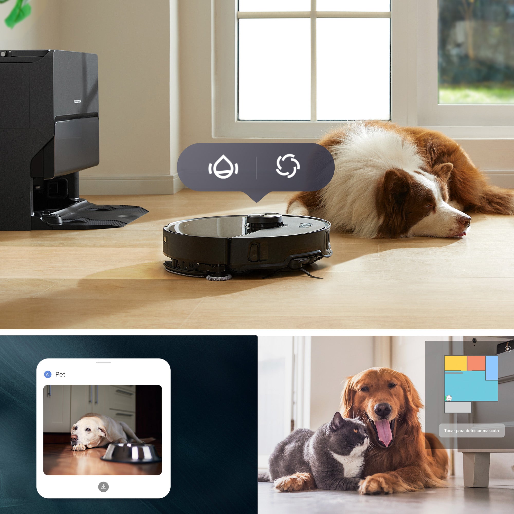 Not only does it recognize pets and stop its main brushes when avoiding them, but it also boosts suction power when cleaning around pet supplies*, guaranteeing a flawless clean.