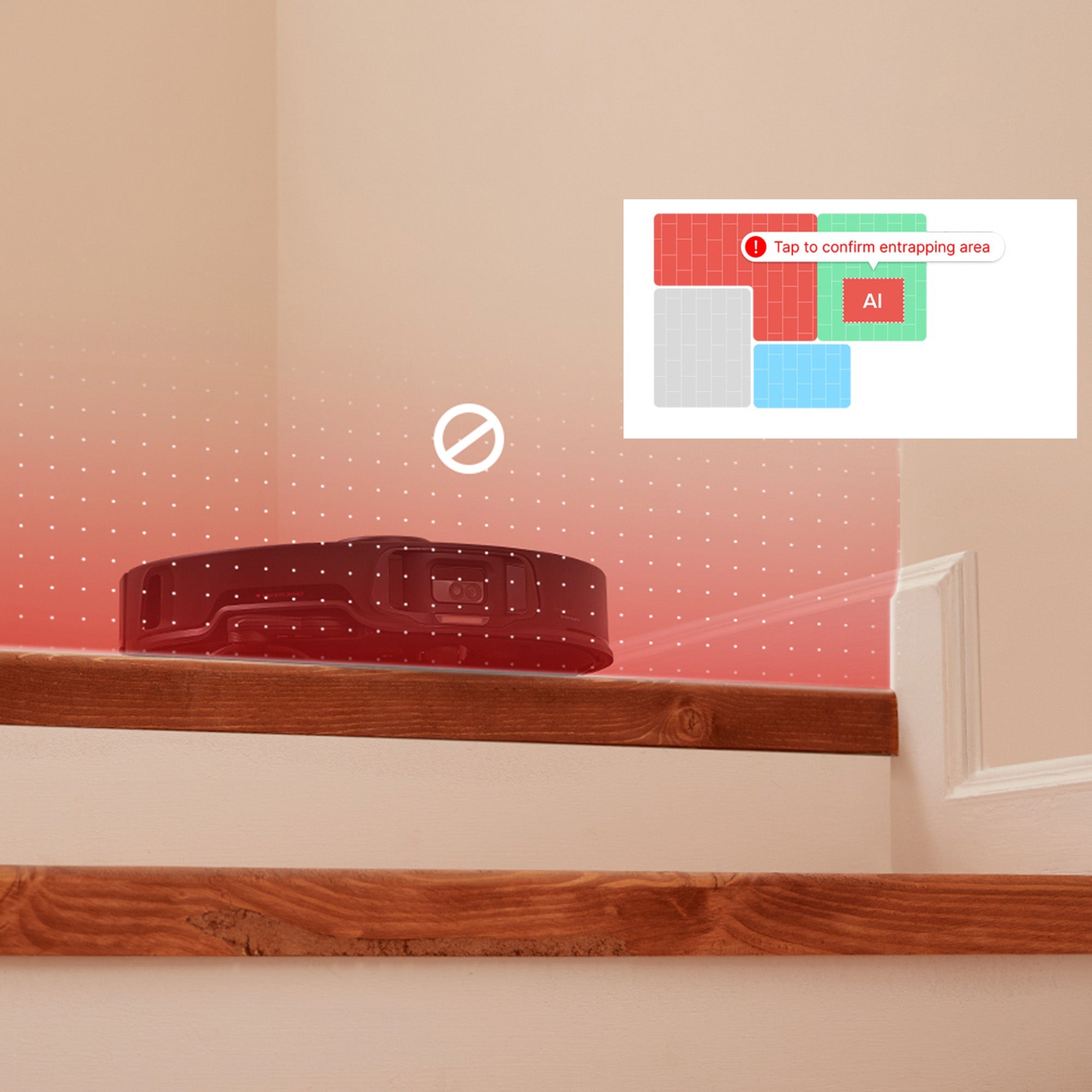 Smart enough to suggest No-Go Zones automatically, your robot is kept safe from falling down the stairs accidentally, or getting stuck in tight spots.