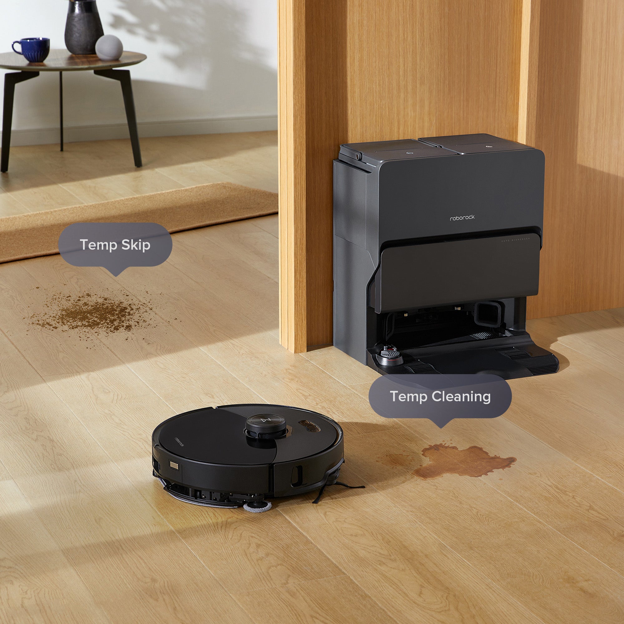 The “Temp Cleaning” function swiftly handles unexpected spills without disrupting your usual cleaning schedule.