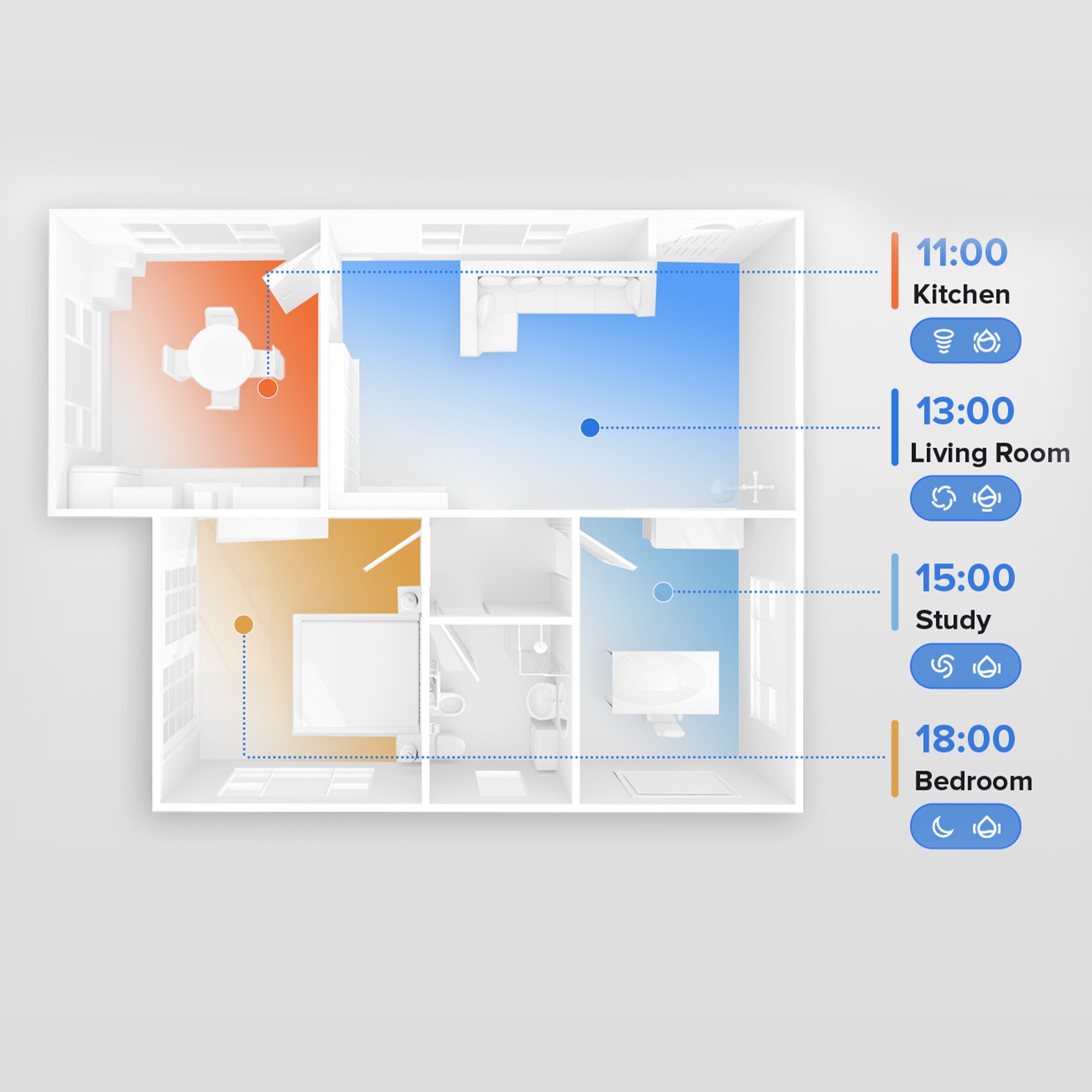 Decide on your time when the robot vacuum cleans with custom cleaning schedules, and set cleaning routines for particular areas in the house regularly or on demand.