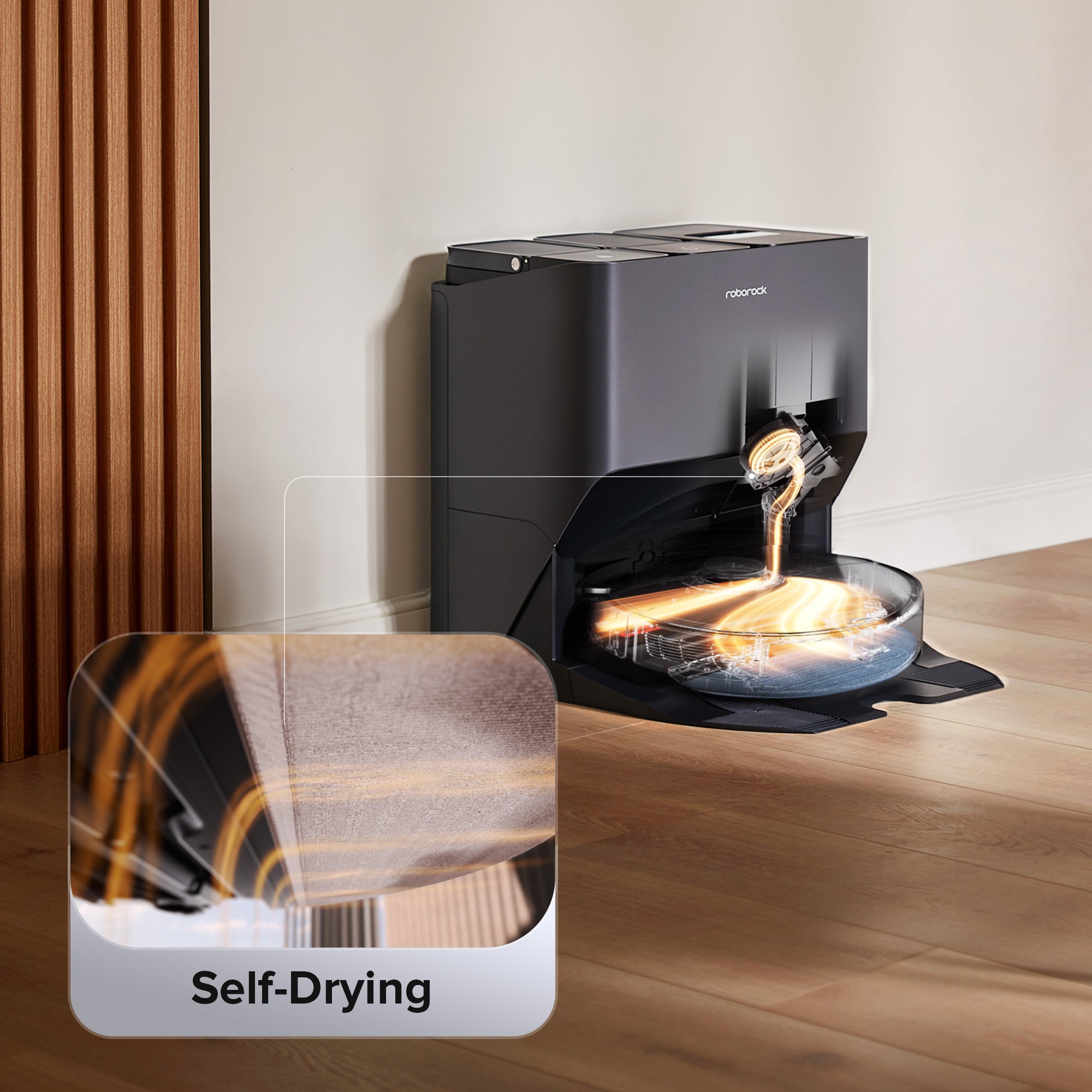 Safely dries the washed mop and bottom of the dock with warm air, preventing mold growth and unpleasant odors even in wet weather.
