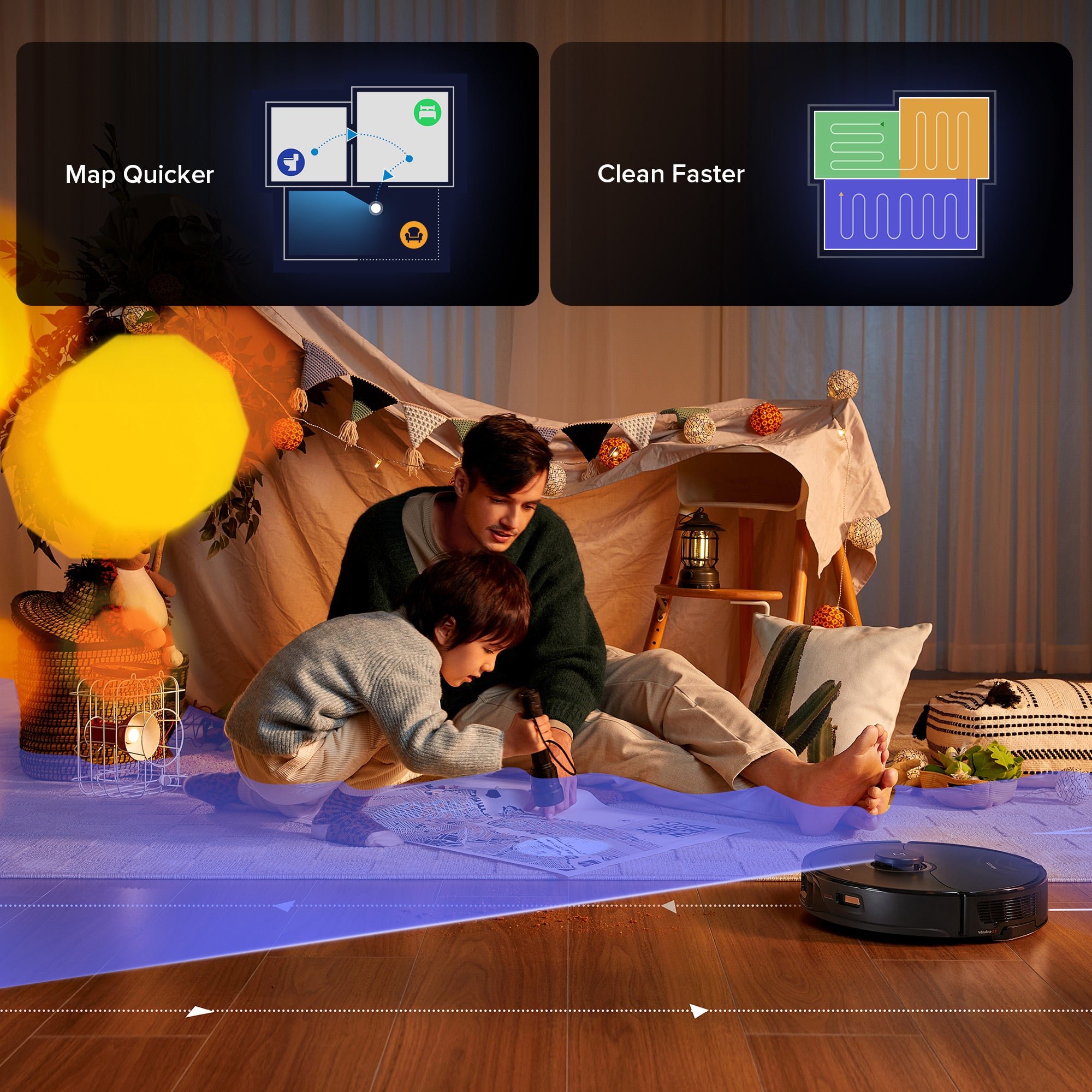Experience fast and effective cleaning as your robot vacuum can create a map up to 6 times faster* before the first cleaning task and can clean your daily area 30% faster when needed.