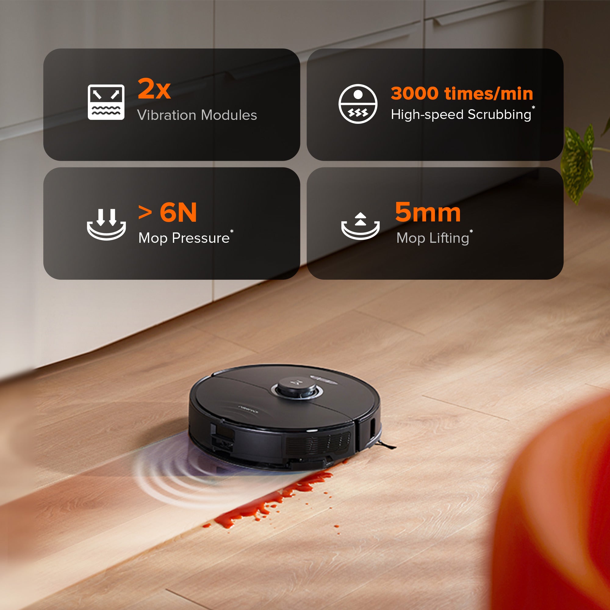 *Tested on mop-only mode with mild scrub intensity and deep+ mop route. Based on internal testing carried out by the manufacturer.