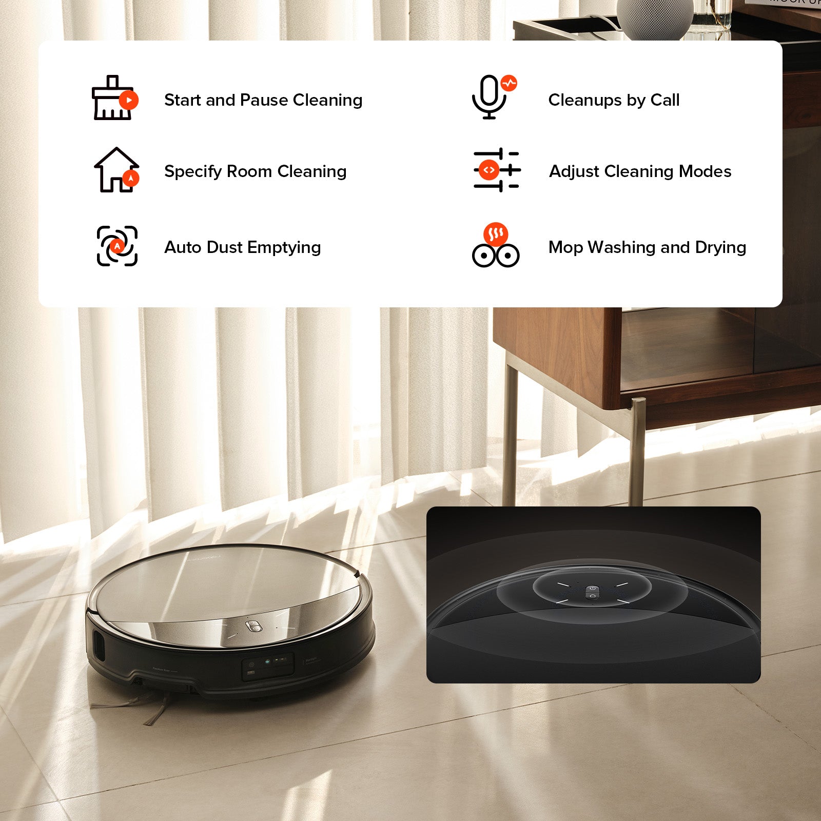 Simply say "Hello Rocky" to kick off cleaning tasks and unlock morecapabilities. Your voice-controlled companion is always ready to help, with no network required.